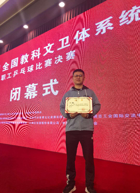 ——公司王巍老师荣获全国教科文卫体系统职工乒乓球比赛第五名